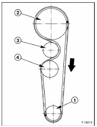 Dabei am kurbelwellenzahnrad - 1 - beginnen und zahnriemen entsprechend der numerierung in der abbildung auflegen.