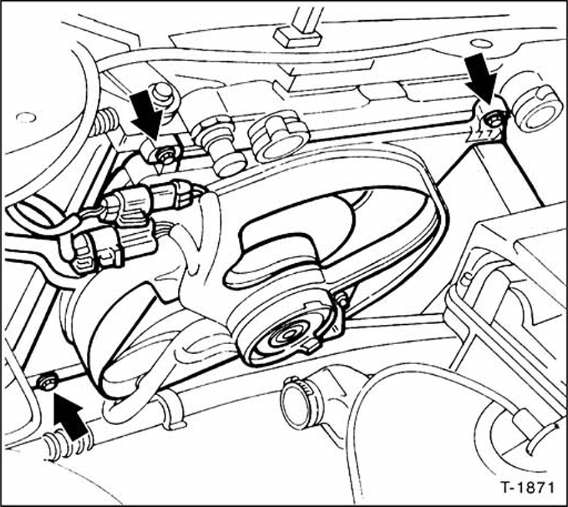 Riemenverlauf ohne klimaanlage: 1 - generator; 2 - servopumpe;