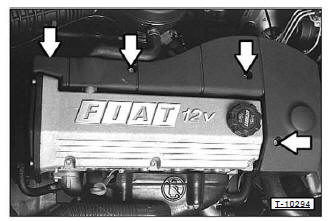Zündkabelabdeckung mit torx t40-schraubendreher abschrauben -pfeile-. Die linke obere schraube muß nur gelöst, nicht abgeschraubt werden.